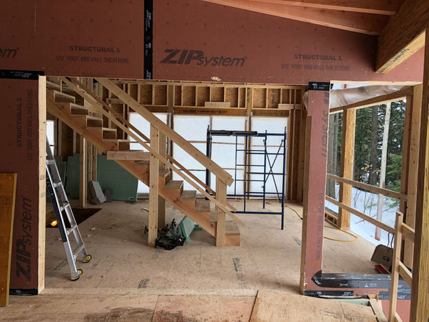 Wood framing & fire-resistant siding were sustainably harvested at "Radiata" Pine tree farms. The few Great Eastern Pine trees that had to be cut at the site were re-cycled at local lumber yards where they were milled and processed, and used to build stair and add paneling in the new house.